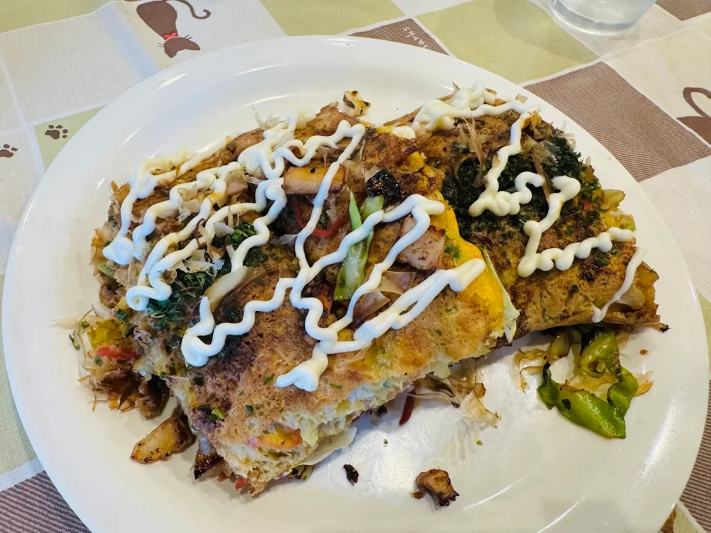 店内は明るく、女子会や家族利用でも入りやすい雰囲気。オリジナルの生地やソースにこだわったメニューは、軽やかな食べ心地で、鉄板焼きの楽しさを“日常のごちそう”に変えてくれます。